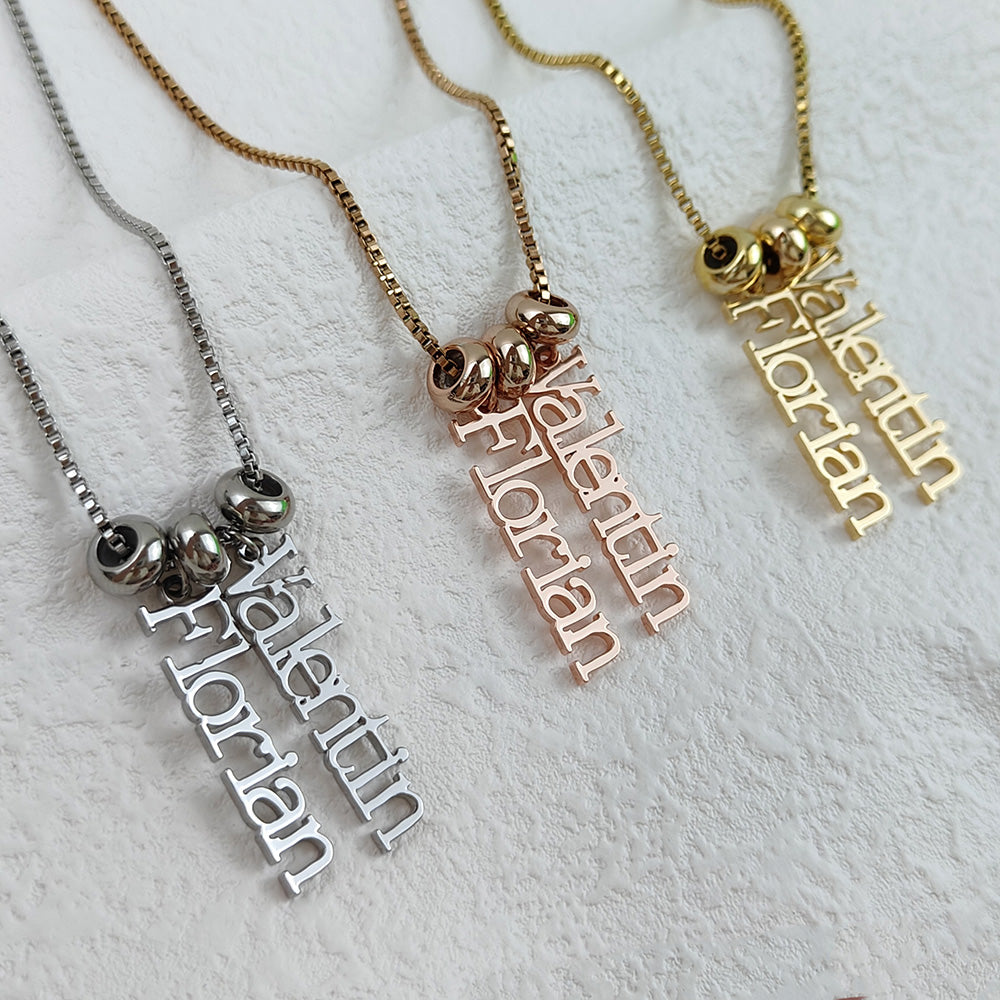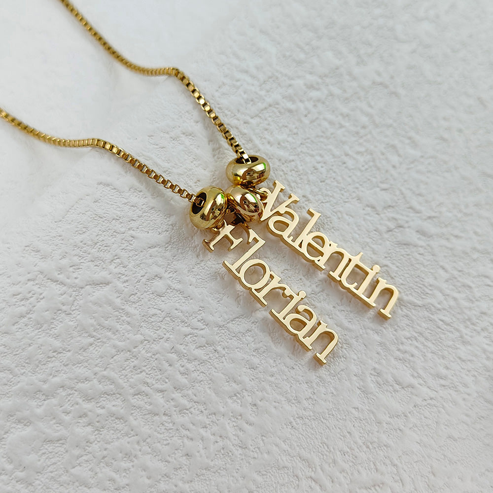 Stainless Steel / 24k Gold Plated Up to 5 names 15 characters maximum per name Compound names and special characters are possible All alphabets are available Chain included Hypoallergenic Clasp closure Buy 2, get 1 free