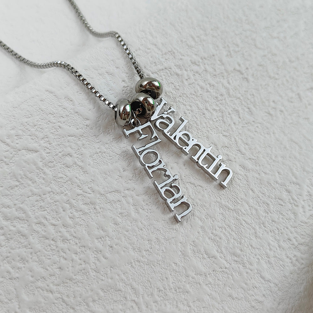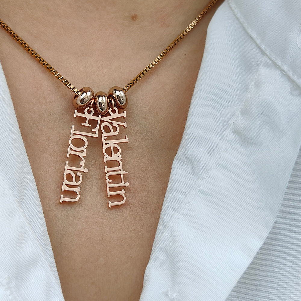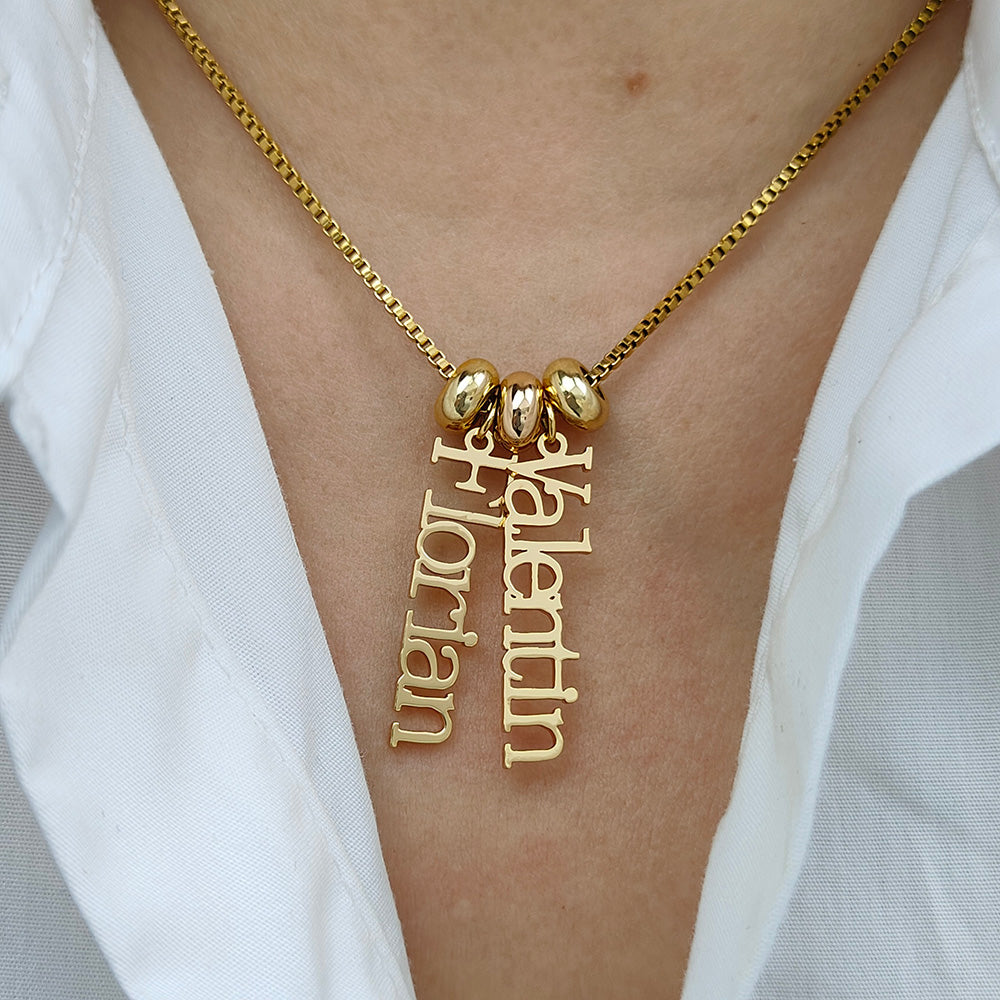 Discover our magnificent customizable necklace, crafted with love, where the names of your loved ones take center stage. This unique piece allows you to keep your loved ones always close to your heart, even when you're far apart.
